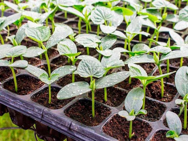 É melhor usar pastilhas de turfa, copos e cassetes como recipientes para futuras mudas de variedades de pepino do Ártico. Os recipientes de turfa permitem que você faça o transplante sem dor, já que a cultura não gosta de colher. A mistura do solo é preparada da seguinte forma: misture em partes iguais o composto de estrume, solo de grama e vermiculita, adicione um copo de cinzas, uma colher de chá de ureia e uma colher de sopa de nitrophoska. Após misturar os componentes, encha o recipiente com a mistura e regue com água quente. Uma semente de pepino é plantada em cada recipiente até uma profundidade de 2 cm e os vasos são colocados em um local aquecido. Após o surgimento dos brotos, as plantas são transferidas para um local iluminado e sem correntes de ar. O cuidado consiste em regar oportunamente com água morna, realce adicional em tempo nublado, alimentação e endurecimento.