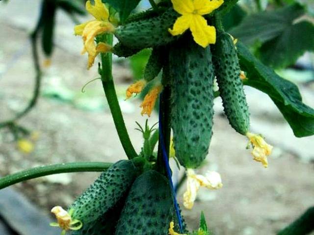 - depois de enraizar em um novo lugar cerca de duas semanas depois, um fertilizante complexo contendo todos os minerais necessários é aplicado sob os pepinos;