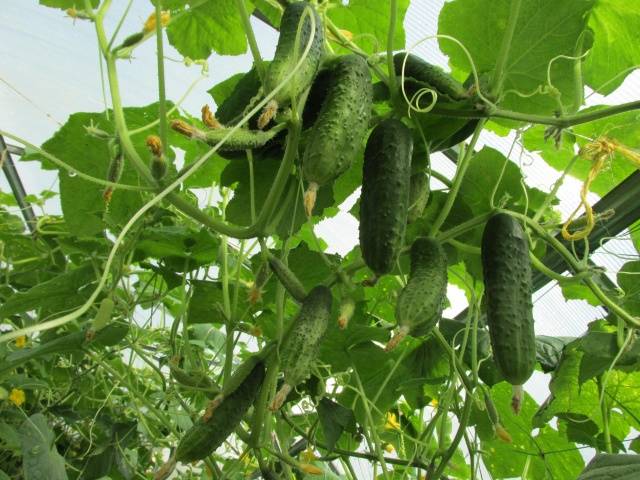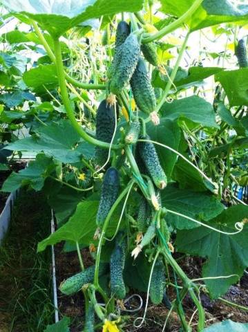 Frutificação de pepinos O namorado é longo, até o início das geadas de outono. A variedade tolera bem snaps frios.