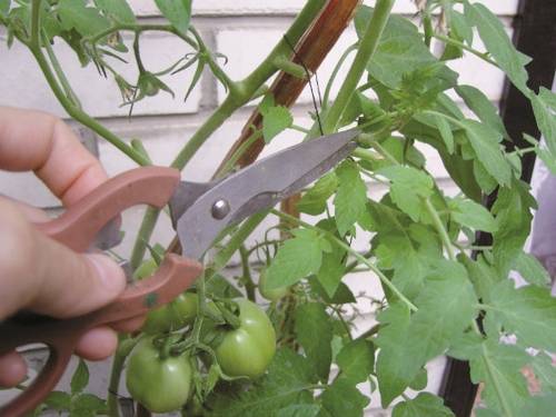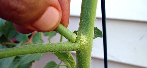 O enteado é um caule lateral que se forma na axila de uma folha de tomate. No processo de crescimento nos enteados, assim como no caule principal, formam-se maciçamente as folhas verdes e as escovas de frutos. Esse crescimento ativo de enteados requer grande quantidade de nutrientes, o que pode provocar a formação de frutos menores no colmo principal e retardar seu amadurecimento. Se você não remover os enteados laterais, as plantações engrossarão fortemente. A falta de circulação normal de ar entre os arbustos provoca o desenvolvimento de doenças e apodrecimento dos frutos.