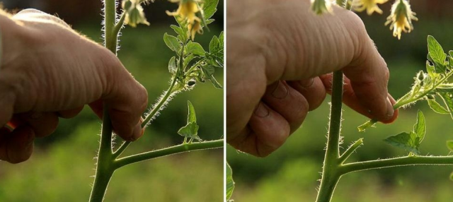 Ao cultivar tomates de maneira escalonada, também pode-se beliscar os brotos principais.