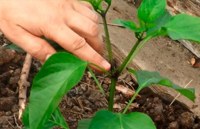 Algumas semanas após o transplante, as mudas de pimenta podem ser alimentadas pela primeira vez com uma solução de humato (para 10 litros de água, 20-25 ml de humato). Assim que as plantas jovens de pimenta atingirem 15-20 cm e começarem a ramificar, pode-se iniciar a formação de arbustos.