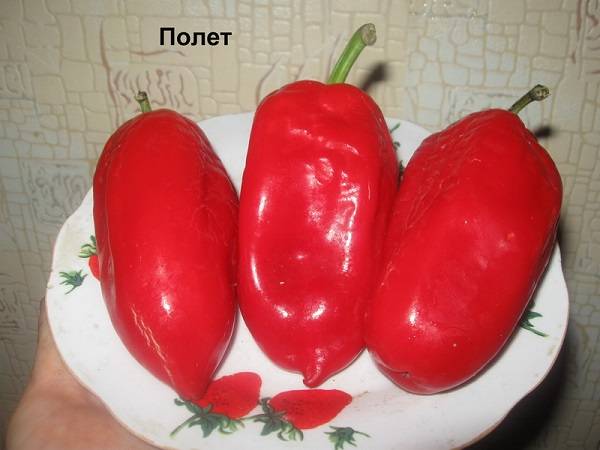 Os arbustos de pimenta voam são padrão, de folha média, não excedem 45-50 cm de altura.As grandes folhas verdes escuras são ovóides. De acordo com o tempo de amadurecimento, a julgar pelas avaliações, a pimenta Flight pode referir-se tanto ao início médio (os frutos amadurecem 80-110 dias após a germinação) quanto ao médio (quando o período de cultivo até a maturidade técnica é de 120-130 dias), dependendo de condições de cultivo.