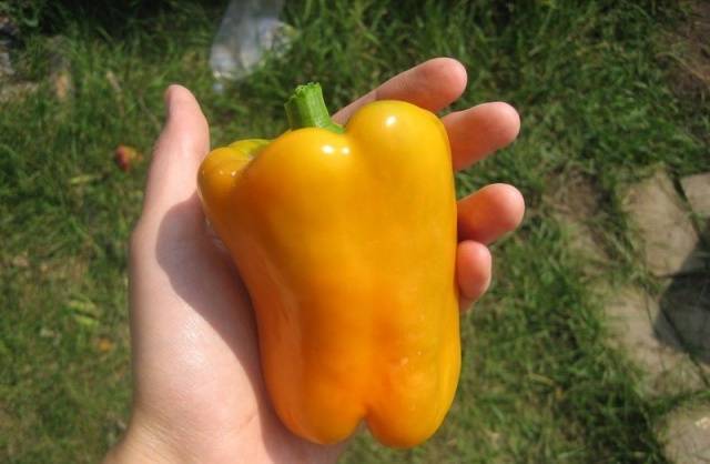 Os frutos crescem até 12-15 cm de comprimento e 8-9 cm de largura, o peso médio de uma pimenta é de 180-200 gramas.