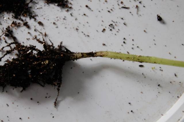 - Excesso de umidade... Se não houver orifícios de drenagem suficientes ou insuficientes, o líquido permanece no solo após a irrigação. Por causa disso, as raízes simplesmente sufocam, a planta fica letárgica, as folhas caem. Ao examinar o sistema radicular, o pedaço de terra terá um caráter pantanoso e se pendurará nas raízes. Além disso, para diagnosticar essa violação, é necessário interromper a rega, se depois de um tempo o solo ainda estiver úmido, então esse é o problema.