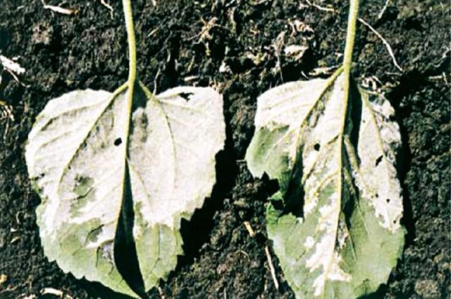 - Oídio, pontos aparecem nas folhas, que mais tarde se fundem em pontos claros e, como resultado, o prato inteiro primeiro fica branco, depois amarelo e depois adquire uma tonalidade marrom.