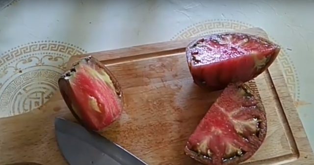 Variedade O abacaxi preto é suculento, sem lacunas, o sabor é mais próximo do doce, a concentração de ácido é desprezível. Tomates com leve cheiro de erva-moura, notas cítricas estão presentes.