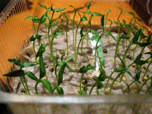 - Mudas de pimenta são mínimas. Certifique-se de que sempre há água fresca no copo. Quando aparecem os primeiros brotos, devem ser alimentados com fertilizantes à base de ácidos húmicos. A próxima alimentação não deve ser feita antes do aparecimento da primeira folha real.