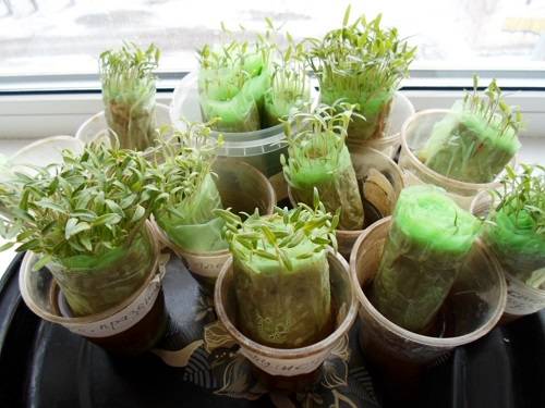 - Coloque um copo de sementes na janela. Nesta fase, as sementes recebem umidade, que fará subir o papel higiênico, o ar e os nutrientes que a própria natureza depositou nas sementes.