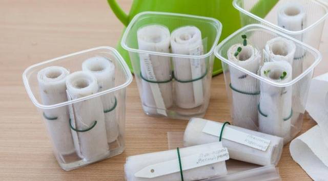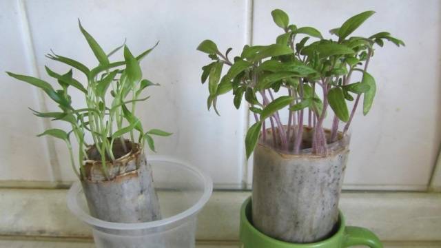 Quando a planta crescer 2 folhas verdadeiras, ela estará pronta para ser transplantada para o solo. Para replantar mudas de pimenta, prepare o solo e recipientes separados. Retire o rolo do copo, coloque-o sobre a mesa e desdobre. Retire com cuidado a camada superior do filme plástico. Separe a planta e plante-a em um recipiente com solo. O papel que se desprendeu junto com as raízes não interfere em nada com a planta.