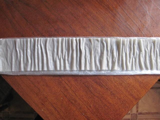 - Prepare tiras de plástico, corte-as na mesma largura do papel higiênico (cerca de 10 cm). O comprimento dependerá do número de sementes retiradas para as mudas (aproximadamente 50 cm). Espalhe as listras na mesa.