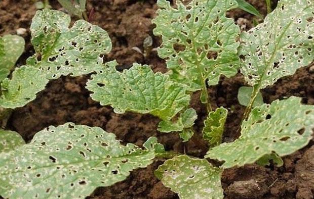 Pulga crucífera | Assim que o solo aquecer até 10 graus | Tratamento fitoverm, espanando com cinza de folhas molhadas | Pulverizar com uma solução de shampoo anti-pulgas em cães, diluir 3 colheres de sopa em um balde de água |