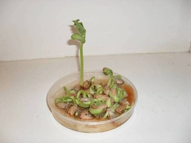 As sementes são mantidas em uma estufa pequena o tempo necessário para a completa bicagem e formação de mudas. Assim que o broto atingir o comprimento de 1,5-2 cm, será possível passar para a última etapa do processamento do material - o endurecimento.