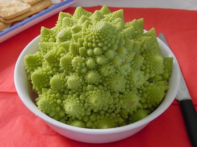 Romanesco é considerado um híbrido brócolis e couve-flor. É popularmente chamado de brócolis românico ou repolho coral. Por sua aparência, lembra uma flor mágica ou a concha de um marisco extinto há muito tempo. Mas os cientistas vêem um certo padrão nele e acreditam que algum tipo de código genético está embutido na aparência da variedade Romanesco.