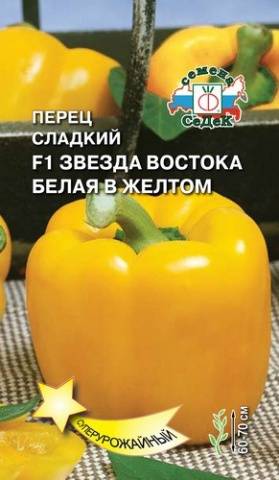 As variedades amarela e laranja da pimenta estrela do leste diferem apenas na cor na fase de maturação biológica, que coincide com o nome da variedade. No período técnico de maturação, são de cor verde escuro. Ambos os híbridos têm maturação precoce e são caracterizados por um crescimento ilimitado. Cada arbusto pode amadurecer simultaneamente até 15-20 frutos, pesando em média 160-180 gramas. Embora a massa das pimentas maiores possa chegar a 250 gramas. Esses híbridos são cultivados melhor em estufas aquecidas.