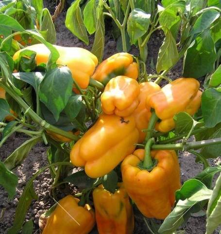Uma das variedades mais interessantes desta série de pimentas. O rendimento pode chegar a 8-9 kg / sq. metros. Os frutos em si também não podem ser chamados de pequenos, atingem uma massa de 250-290 gramas. Depois de passar por uma tonalidade verde escura, quando totalmente maduras, os pimentões adquirem uma rica cor laranja escuro. Os frutos são particularmente suculentos, com uma espessura de parede de 8-10 mm e um rico aroma apimentado.