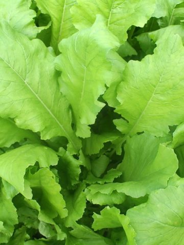 De 1 sq. plantações m são removidos até 3,5 g de folhas frescas. A massa de cada planta não ultrapassa os 20 G. A lâmina foliar é oval-arredondada, de cor azul esverdeada, ligeiramente enrugada. Não há revestimento de cera e pubescência nele.