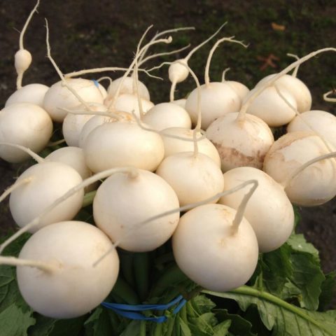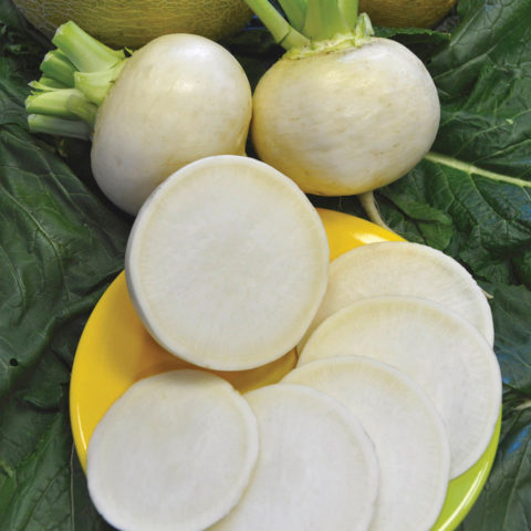 Turnip White Night é outro representante dos híbridos de meia temporada. São cerca de 2 meses desde a formação das mudas até o estágio de maturação técnica. Uma raiz branca, de até 12 cm de tamanho, fica 2/3 submersa no solo. No interior, os vegetais são suculentos e de sabor delicado.