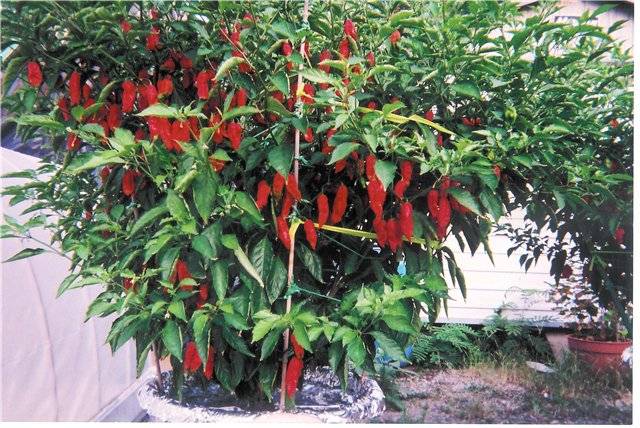 Essas pimentas são levemente picantes, têm um aroma rico de páprica e um sabor agradável. Os arbustos são considerados altos - sua altura geralmente ultrapassa 130 cm, os galhos estão se espalhando. As plantas precisam ser amarradas e são melhor cultivadas em uma estufa.