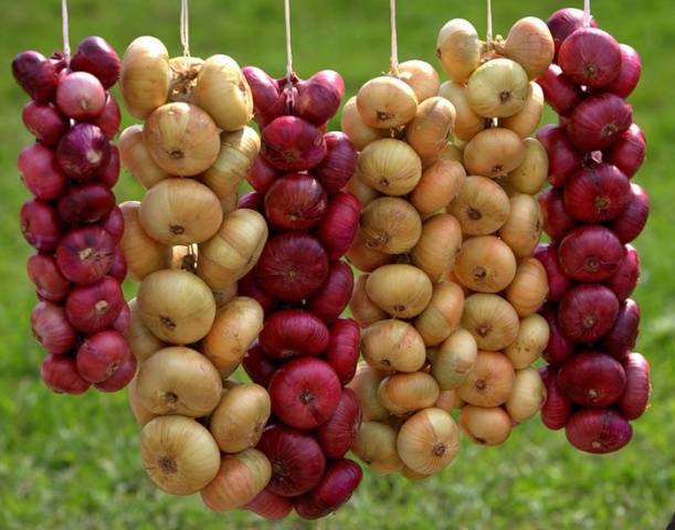 Além disso, ao separar as frutas, é necessário remover os bulbos podres ou danificados. Antes, era costume trançar cebolas e pendurá-las na cozinha assim. Para isso, é necessário desenterrar o fruto com muito cuidado, sem retirar a pena. O depósito deve estar seco. Em um local úmido, os fungos se multiplicam rapidamente, fazendo com que a cebola comece a apodrecer.