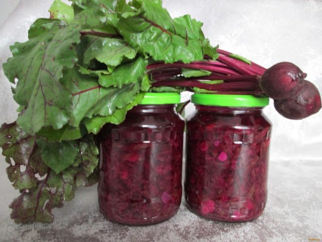 Folhas de beterraba em conserva