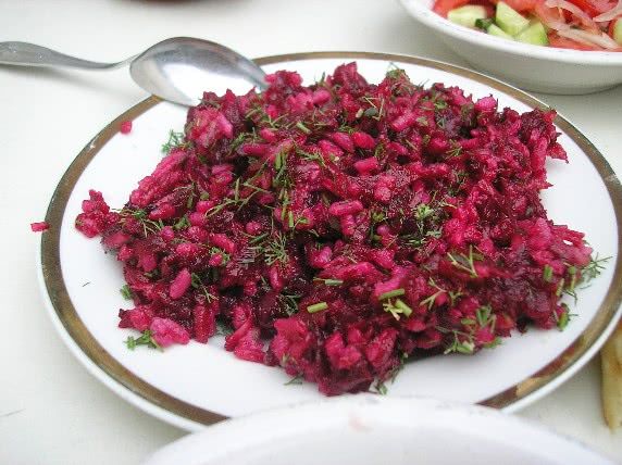 Em uma dieta de beterraba para perda de peso, deve haver saladas diferentes no cardápio. Aqui estão apenas algumas receitas: