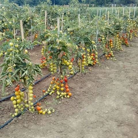 - As frutas amadurecem em cachos longos e até 20-25 tomates podem amadurecer simultaneamente em um cacho.