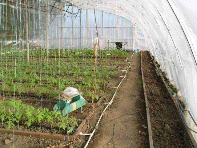 - Quando os tomates crescem de 6 a 7 folhas verdadeiras, eles podem ser transplantados para um local permanente. A estufa também é preparada com antecedência: a camada superior do solo é substituída, as paredes e todas as estruturas são lavadas com um desinfetante e a estufa é ventilada.