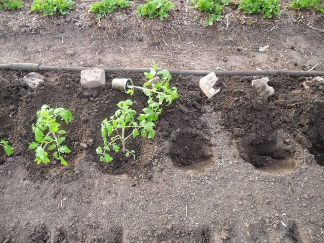 - Nas primeiras semanas, os tomates não são regados - suas raízes agora são incapazes de absorver a umidade, todas as forças da planta são gastas na adaptação.