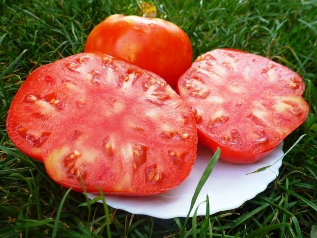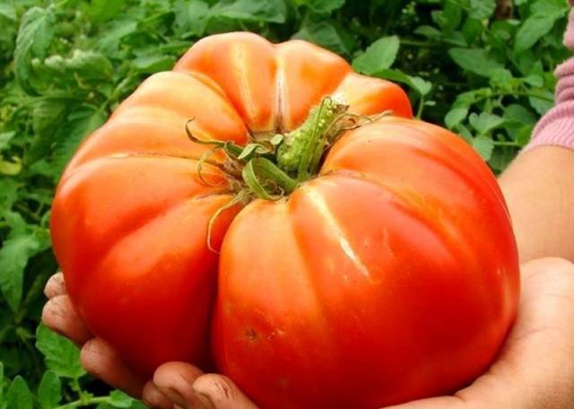 Em primeiro lugar, deve-se notar que o tomate Orgulho da Sibéria é o mais frutífero de todas as variedades criadas para as regiões do norte. O peso de uma fruta pode chegar a cerca de 900 gramas, o que é um recorde para o tomate siberiano.