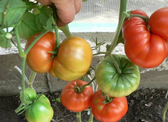 - recomenda-se plantar tomate de acordo com o esquema de 4-5 arbustos por metro quadrado - uma variedade de frutos grandes deve ter luz e nutrição suficientes.