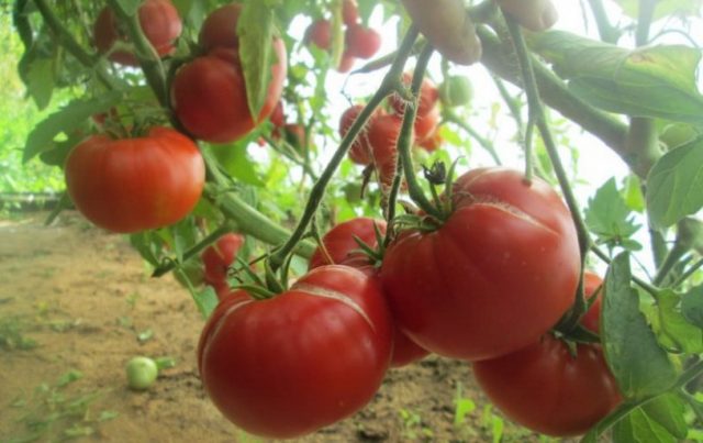 Variedade de tomate O amor da mamãe pertence às variedades semideterminadas. A altura dos arbustos desta planta varia de 1,5 a 1,8 M. Em estufas, a altura dos caules chega a 2 m.