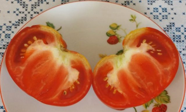 A cor da fruta em estado de maturação é vermelho intenso. Os frutos são cobertos por uma casca dura, brilhante, quase lustrosa. Existem muitas câmaras de sementes nas frutas, no entanto, elas contêm poucas sementes. A polpa da fruta é suculenta e macia. Tem um sabor adocicado e um cheiro característico de tomate muito forte.