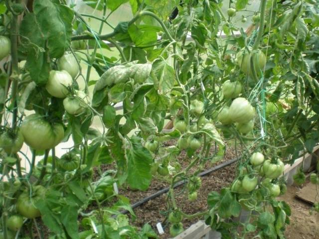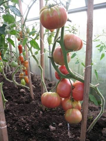 No interior, os tomates são cultivados pelo método de mudas. O solo da estufa é desenterrado no outono. Certifique-se de usar fertilizantes na forma de húmus e cinzas.