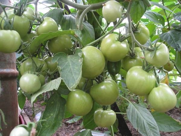 A massa verde do tomate cresce lentamente. As folhas são de tamanho médio, com moderação.