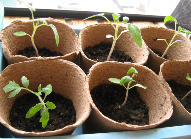 Na falta de luz solar, é aconselhável iluminar os tomates com lâmpadas fluorescentes. As mudas crescem bem a uma temperatura de + 20˚C + 22˚C. Na fase de 2-3 folhas formadas, é necessário fazer uma escolha e alimentar os futuros tomates pela primeira vez.