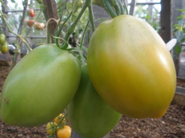 Os tomates são plantados em covas preparadas. Por 1 sq. m de canteiros não têm mais de 3 plantas. Os tomates são escalonados na estufa para facilitar o cuidado deles.