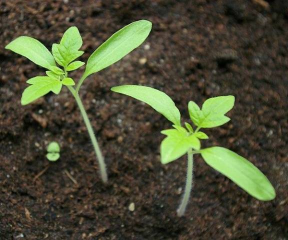 Os tomates germinam mais rápido em temperaturas acima de 25 graus. Os brotos de tomate aparecem após 5-8 dias. Em seguida, os recipientes são colocados em um local iluminado.