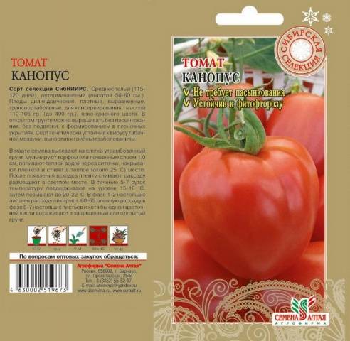 A variedade de tomate Canopus nasceu há cerca de 20 anos graças aos esforços de criadores do Instituto de Citologia e Genética, que está sob a jurisdição do Ramo Siberiano da Academia Russa de Ciências. Os cientistas do centro de pesquisa deste instituto desenvolveram muitas variedades interessantes de vegetais e, acima de tudo, tomates, que são particularmente resistentes aos caprichos do tempo e às várias manifestações de organismos patogênicos.