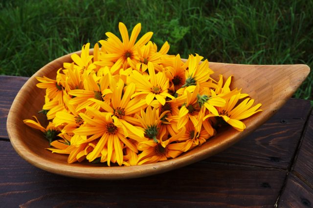 Muitas substâncias úteis estão concentradas nas raízes da alcachofra de Jerusalém, mas outras partes da planta têm propriedades positivas semelhantes. Eles contêm ainda mais antioxidantes e flavonóides, que são valiosos para qualquer processo regenerativo no corpo.