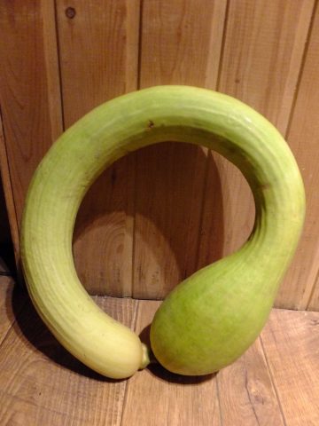 O trombone de abóbora butternut é uma variedade com formato de fruta fora do padrão. Eles são longos e intrincadamente torcidos. Na aparência, eles realmente se assemelham a um trombone.