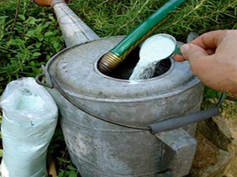 Para desinfetar o solo, ele é derramado com uma solução de sulfato de cobre (15 g por 10 litros de água). Esse valor é suficiente para aproximadamente 5 sq. metros do jardim. O tratamento com sulfato de cobre é realizado um dia antes da introdução do principal complexo de nutrientes.