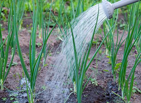 - Em 10 litros de água, 30 g de superfosfato e 25 g de cloreto de potássio são diluídos. Esta solução é suficiente para processar 5 sq. metros de plantações de cebola.