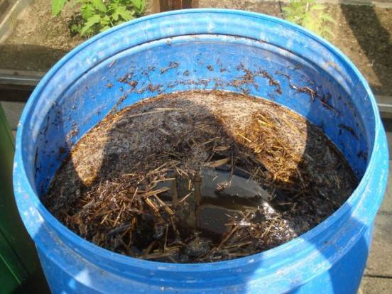 Se possível, dilua o balde de verbasco com 3-4 baldes de água morna e deixe fermentar por uma semana. Da mesma forma, você pode preparar uma infusão de excrementos de pássaros ou fertilizante verde.