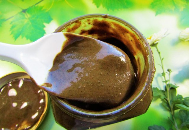 O Urbech a partir de sementes é obtido com consistência homogênea, espessa, cor chocolate.