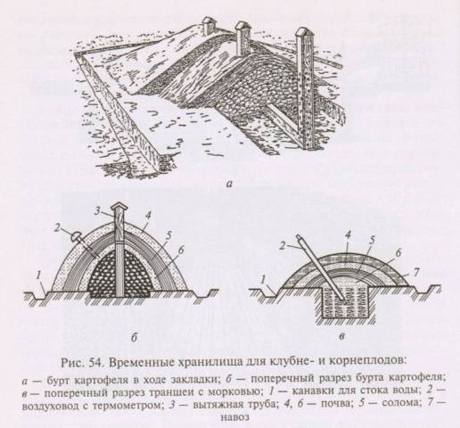 Se você não tiver uma adega, a tecnologia de armazenamento da batata será naturalmente diferente da descrita acima. Uma das opções é guardar as batatas em uma cova especialmente preparada para isso. Pode ser cavado em uma horta ou em um galpão. Uma cova sob um dossel ou em um galpão é a melhor maneira de armazenar batatas do que em uma horta. Assim, você pode criar rapidamente as condições necessárias para armazenar batatas.