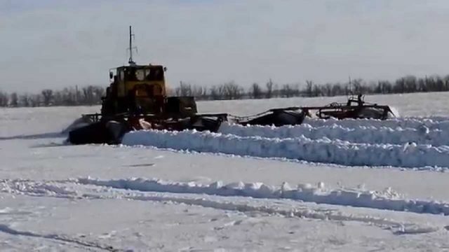 - Formação de rolos. Aqui, um agregado é usado, que é chamado de depósito de neve. Este método de retenção de neve entre os agricultores não é considerado eficaz o suficiente devido ao pequeno aumento na espessura da neve. Você pode ver claramente como esse método de retenção de neve é realizado nos campos no seguinte vídeo: