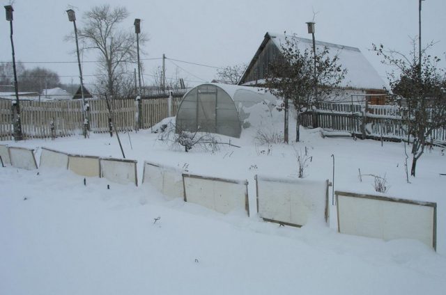 - Fornecimento de irrigação de primavera "neve" de plantações. Com o início das altas temperaturas, a neve derrete gradualmente e hidrata até mesmo as raízes profundamente enterradas. Devido à espessura dos montes de neve, o solo é solto a uma profundidade suficiente.