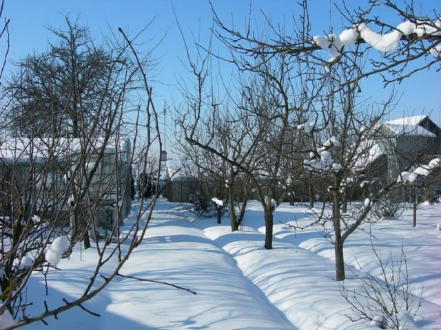 Mas os jardineiros têm outra opção que ajudará a economizar uma quantidade adicional de neve para as plantas - um planejamento competente de plantações. Em locais onde existem jardins, cercas e cercas, a neve fica presa de forma natural.Lá é recomendado o plantio de morangos, framboesas, xisto maçã e pera, chokeberry preto - aquelas plantas que precisam de proteção contra neve. As partes opostas do jardim, onde o vento sopra neve, estão plantadas com groselhas, madressilvas, macieiras e peras comuns, espinheiro-mar. Ameixas e cerejas podem ser colocadas um pouco mais longe. Para não prejudicar as plantas, deve-se respeitar a relação entre a espessura da neve e as variedades de culturas. Morangos suportam uma cobertura de não mais de 80 cm, ameixas, cerejas, framboesas - até 1 m, espinheiro, maçã e pêra - 1,2 m, groselhas, groselhas e yoshta - até 1,3 m.