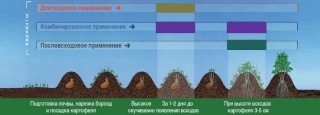 - O período de ação do herbicida é até o fechamento da folhagem nas fileiras da batata.